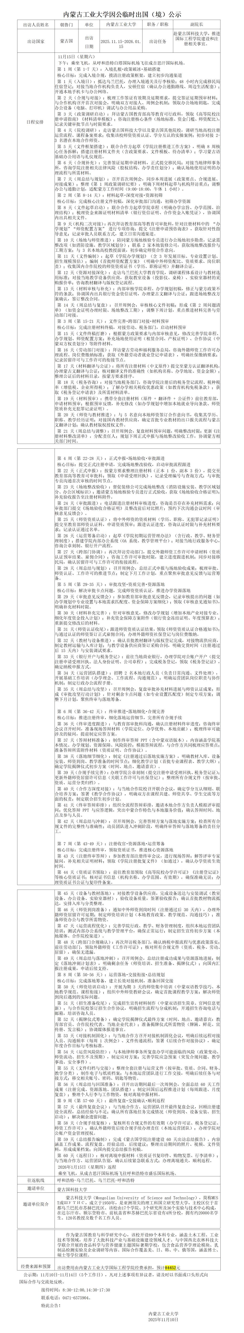 内蒙古工业大学朝鲁门因公临时出国(境)公示