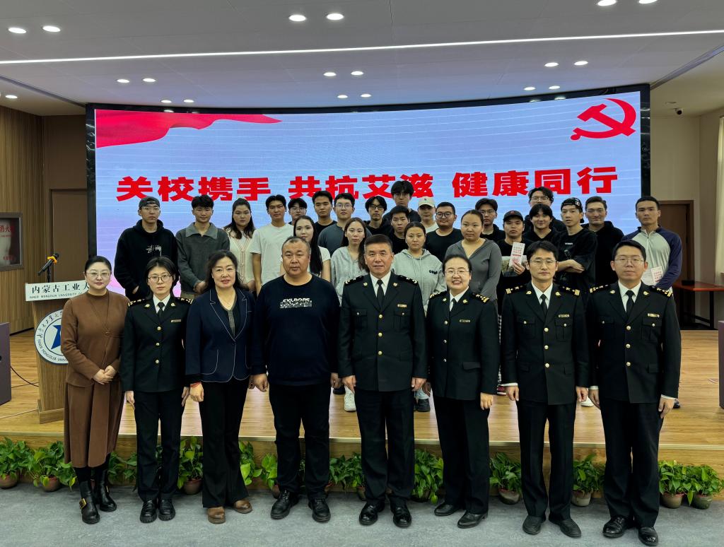 11月27日,内蒙古工业大学国际教育学院联合呼和浩特海关举办 “关校携手 共抗艾滋 健康同行” 联合主题党日暨艾滋病宣传教育活动。呼和浩特海关卫生检疫处处长、支部书记张胜,检疫管理科科长、宣传委员高晨菲,生物安全科科长、组织委员许士勇及支部成员商梦文、许多,呼和浩特国际旅行卫生保健中心主任医师郝静云等嘉宾应邀莅临指导,国际教育学院院长白南定、副院长杨旭、党员代表及国际学生代表共同参与活动。