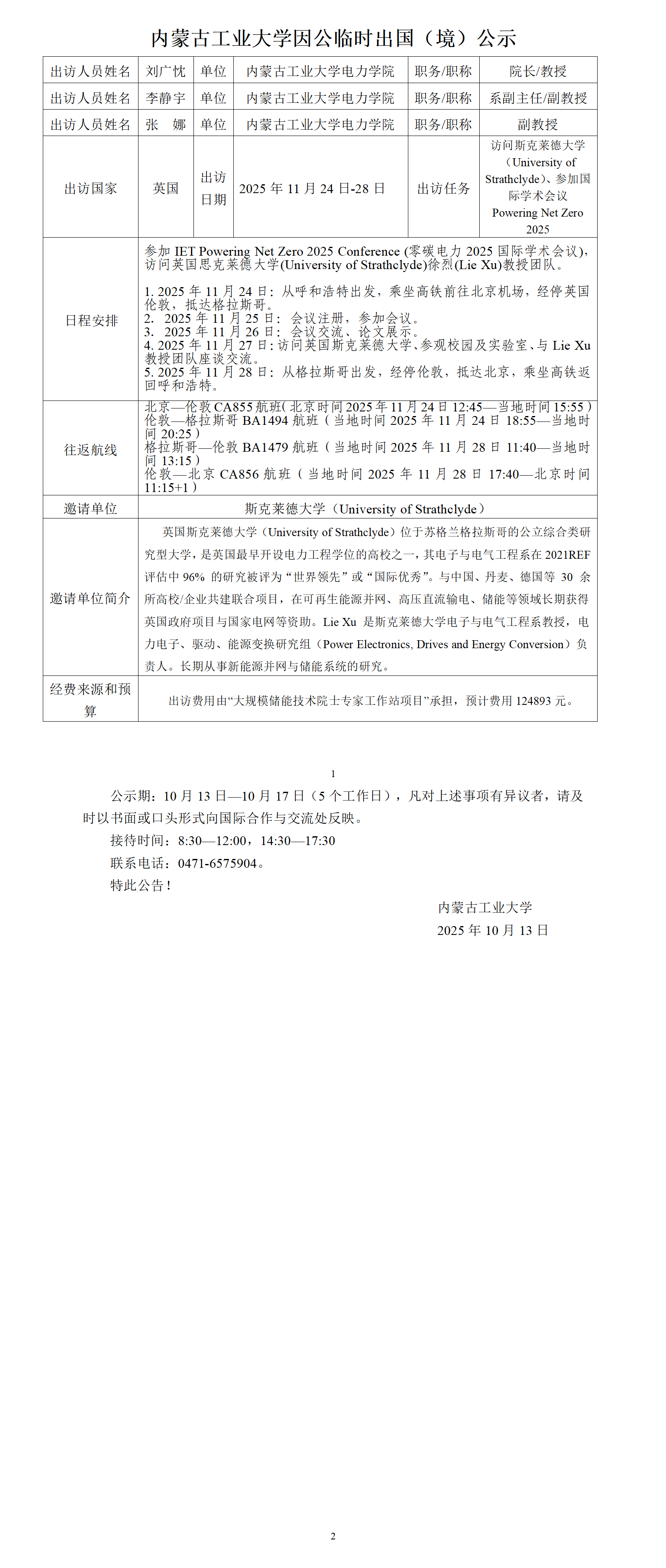 内蒙古工业大学刘广忱等3人因公临时出国(境)公示